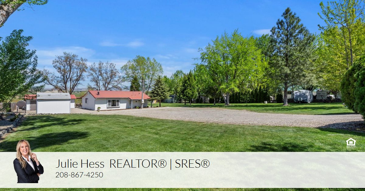 Rare find on South Slope! Inviting farmhouse on nearly an ACRE with VIEWS, NO CCR's, no neighbors directly behind or in front plus a SHOP. This spacious home lives large with a 9' ceiling, a flexible floorplan and a big third bedroom. Kitchen features plenty of cabinet space with adjustable under lighting for all the counter space, along with a huge pantry and quiet Bosch dishwasher. The private primary ensuite has a dual vanity and walk-in closet. You'll love the new carpet, tile and low maintenance gravity fed oil stove. Park-like grounds with lush yard, idyllic garden area, berries, mature trees and irrigation runs $75 annually. Ample parking, 3 storage sheds, including a NEW 10'x20' and the aforementioned shop is heated, insulated and has 2 drops for the 220v power. This country retreat-like property is situated in the heart of Emmett's beloved fruit producers - you can purchase the freshest fruit within two miles, throughout the growing season. Experience melodious songbirds and living of yesteryear now!