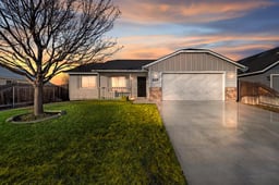 Location, location, location! Minutes from I-84, and all the recreation, medical, shopping and restaurants you could want, lies this inviting single-level home nestled at the end of a quiet road, with a covered front porch. Step inside to find vaulted ceilings, an open layout and lots of natural light. The kitchen features dark wood cabinetry, granite tile countertops, bar-top seating, a full tile backsplash, and a corner pantry, and opens to the dining area with sliding glass doors leading to the back patio. The split-bedroom floor plan provides added privacy for the primary suite, which features an extra-large walk-in closet with built-ins, an oval soaking tub and shower combination, and raised-height cabinetry. Outside, the backyard is nicely landscaped with an extended patio, concrete curbing, and ample space to relax or entertain. With two additional bedrooms, a full secondary bathroom, and a fully finished two-car garage with epoxy flooring, this home truly has so much to offer! It has been professionally cleaned and is move-in ready!