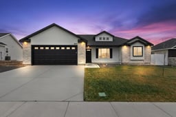 Brand New & Ready for you! Welcome to this stunning 3-bed, 2-bath home located in a desirable neighborhood. This single-level home offers a bright, modern open-concept living space with high vaulted ceilings and multiple recessed lights, that combines the kitchen, dining, and living area. The kitchen features crisp white shaker-style cabinetry accented with dark hardware, a light tile backsplash, and stainless-steel appliances. A spacious black center island with a dark countertop anchors the space, and a dedicated pantry provides extra storage and convenience. The primary suite impresses with a tray ceiling, & large walk-in closet while the primary bath features a generous walk-in shower. Enjoy the attached 2-car garage and a low-maintenance exterior finished with siding, stucco, and rock accents. Newly built & thoughtfully finished, this home is moving in ready. Call to schedule your private showing today!